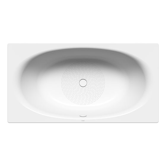 Rechteck-Badewanne mit mittig positioniertem emaillertem Ab-/Überlaufdeckel in Wannenfarbe, besonders angenehm durch weich geformten Schulterbereich